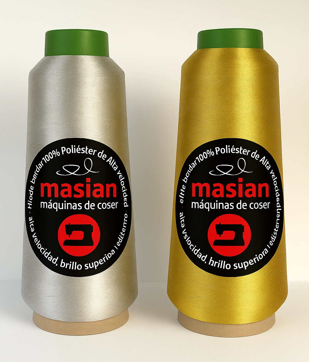 Hilo de Bordar Metalizado 150D de 4800 metros de alta calidad para bordado a máquina, fabricado con fibras metalizadas y poliéster de refuerzo. Su brillo intenso, resistencia y acabado exclusivo lo convierten en la elección ideal para quienes buscan un efecto decorativo y profesional en cada bordado.